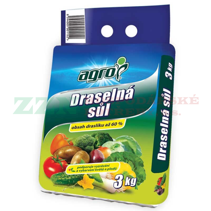 • Agro Draselná sůl je nejkoncentrovanější draselné hnojivo s obsahem draslíku, který podporuje vyzrávání a vybarvení plodů a květů a zdravý růst zelených listů.