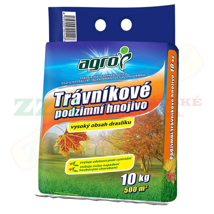 AGRO Podzimní trávníkové hnojivo podporuje lepší vyzrávání trávníku před zimou, zvyšuje odolnost proti vymrzání a vůči suchu, snižuje riziko napadení houbovými chorobami, udržuje travní porost kompaktní a odolnější vůči sešlapu.