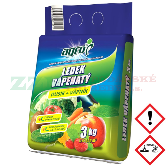 Agro LEDEK VÁPENATÝ je nejrychleji působící dusíkaté hnojivo. Jeho používání je vhodné k přihnojování všech plodin a kultur s výjimkou kyselomilných rostlin (azalky, rododendrony, kanadské borůvky…). Hnojivo obsahuje vápník, který snižuje kyselost půdy. Díky svému složení výrazně zvyšuje výnosy plodů a zlepšuje jejich skladovatelnost. Používáním hnojiva urychlujeme regeneraci rostlin s poškozenou listovou plochou.