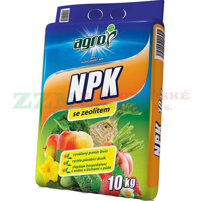 AGRO NPK je minerální hnojivo určené k základnímu hnojení ovoce a zeleniny před vlastní výsadbou a k přihnojování v průběhu vegetace. Hnojivo má vyvážený poměr živin, vysoký obsah dusíku v rychle působící formě pro bujný a rychlý nárůst plodin. Obsahuje přírodní horninu ZEOLIT, který na sebe poutá živiny a následně je pozvolna uvolňuje do půdy pro potřeby rostlin. ZEOLIT rovněž vylepšuje strukturu a vzdušnost půdy.