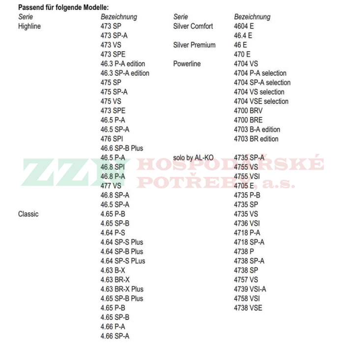 • Nůž je použitelný pro modely sekaček viz. fotografie.