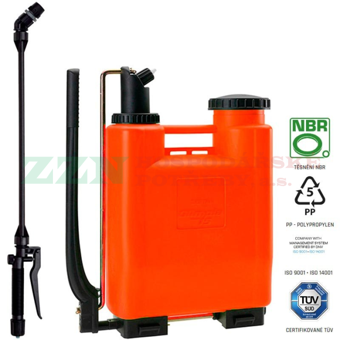 Tlakový zádový postřikovač OLIMPIA o maximálním objemu 14,25 l, vhodný k ošetření rostlin, vinné révy, apod.