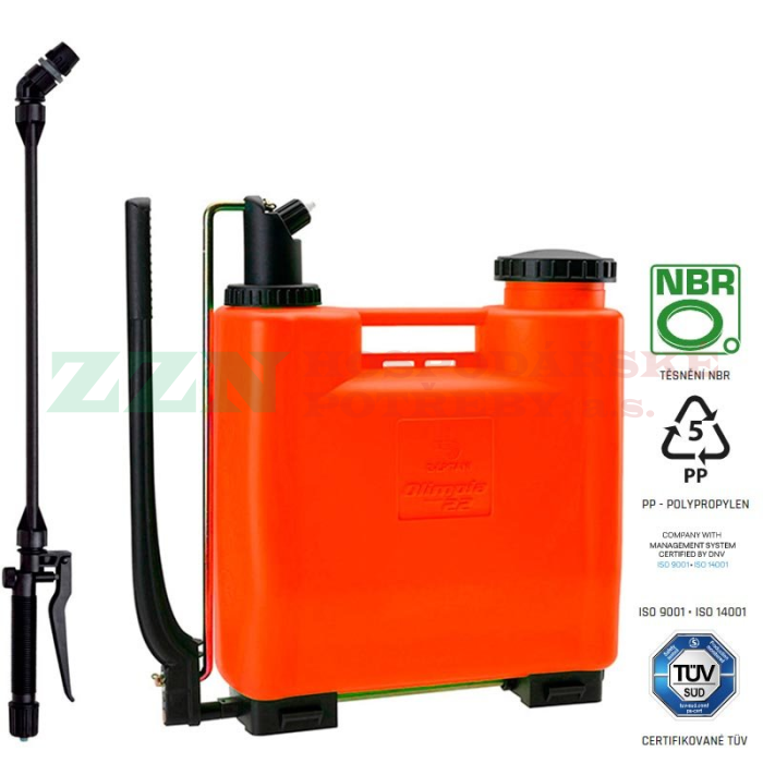 Tlakový zádový postřikovač OLIMPIA o maximálním objemu 20,25 l, vhodný k ošetření rostlin, vinné révy, apod.
