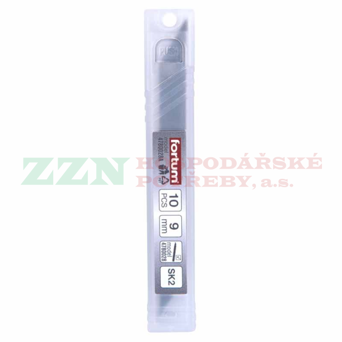 Břity ulamovací do nože 10ks, 9 mm, ostrý úhel, SK2, FORTUM 4780028A