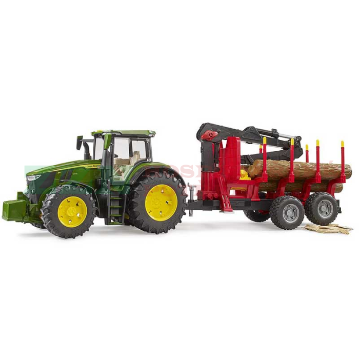 BRUDER 3154 Traktor John Deere 7R 350 se zadním přívěsem a 4 kládami