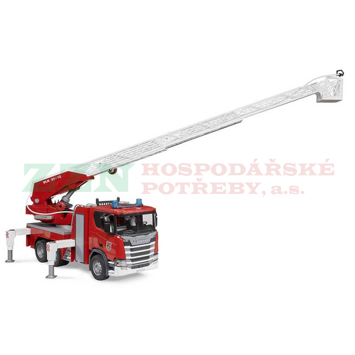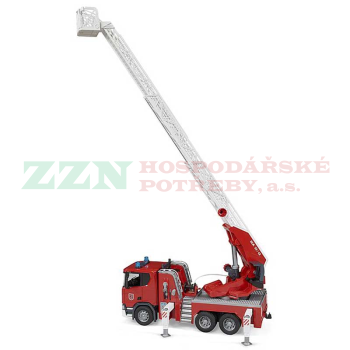 • Vrcholem hasičské techniky v řadě BRUDER je žebříkový hasičský vůz Scania Super 560R.