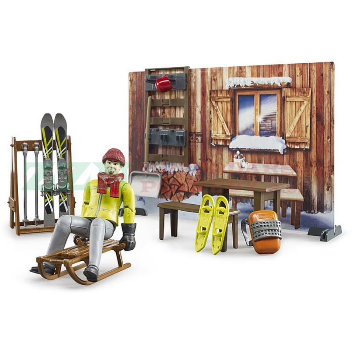 BRUDER 63102 BWorld Horská chata s figurkou a skútrem
