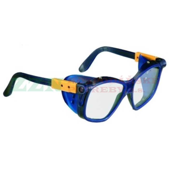 Ochranné brýle s bočními kryty a s nastavitelnou délkou stranic, osazené čirými ochrannými zorníky.