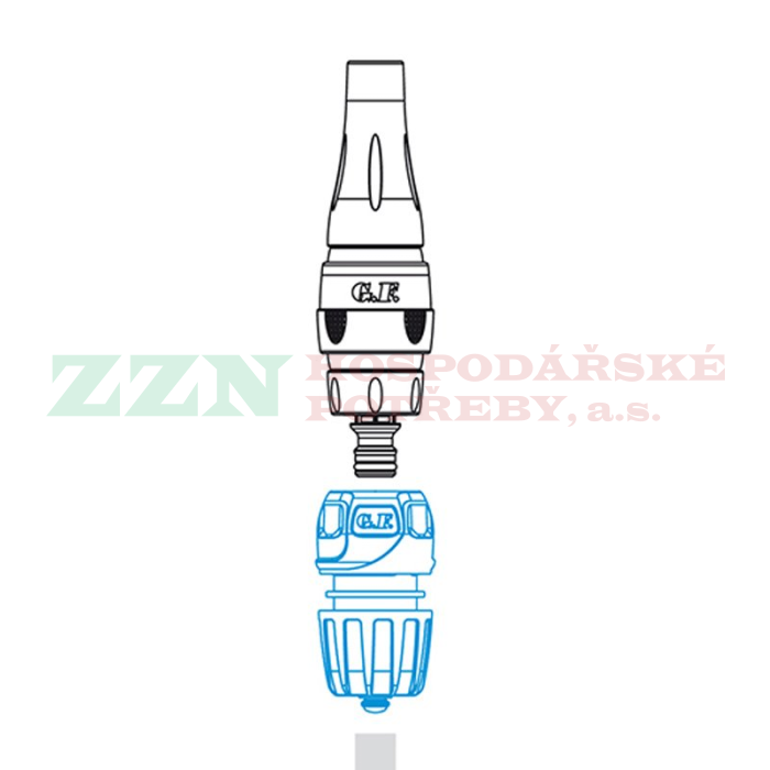 Rychlospojka pro nacvaknutí hadice k různému zavlažovacímu příslušenství.