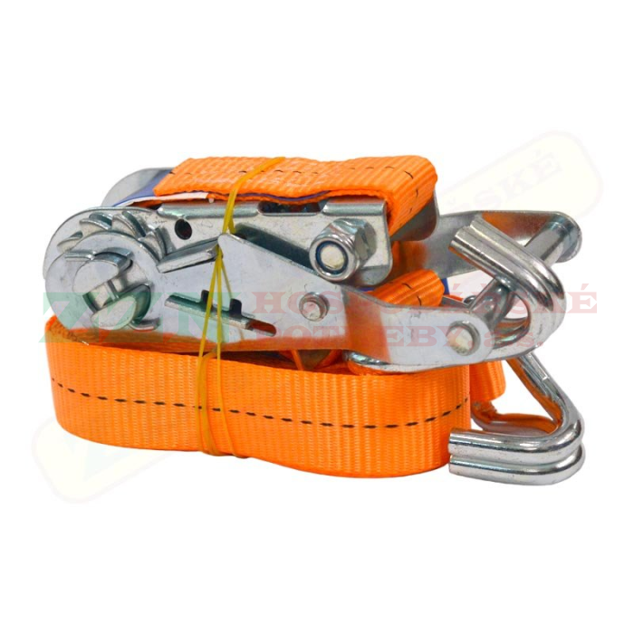 • Upínací pás se skládá ze dvou dílů, kurtny a ráčny, obě tyto části disponují hákem pro snadné ukotvení.