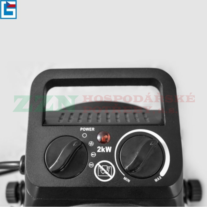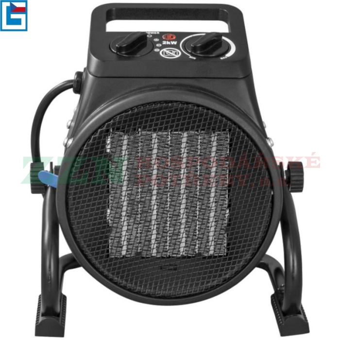 Max. tepelný výkon: 2 kW (1720 kcal/hod., 2 topné stupně: 1 kW/2 kW), ventilátor.