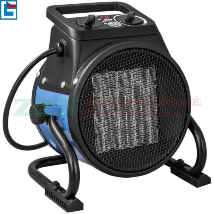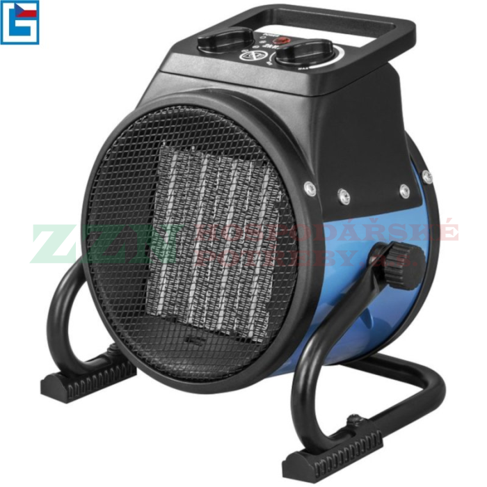 Konstrukce: plášť topidla z oceli, topné těleso s ochrannou mřížkou, trubkový stojný rám, transportní rukojeť, 1,4 m přípojný