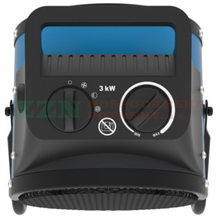 Přenosné keramické topidlo, určené k vytápění menších (uzavřených) prostor - chat, dílen, sklepů, garáží atp. PTC topné články (deska ohřívače vč. pozistorů, které po vlastním zahřátí výrazně omezují další spotřebu elektrického proudu). Max. tepelný výkon: 3 kW (2580 kcal/hod, 2 topné stupně: 1,5 kW / 3,0 kW), ventilátor. Termostat - automatické zapínání (vypínání) topné desky při dosažení nastavené teploty, ochrana proti přehřátí. Konstrukce: kovový plášť, topné těleso s ochrannou mřížkou, trubkový podstavec, transportní rukojeť, 1,6 m síťový kabel H05 RN-F.