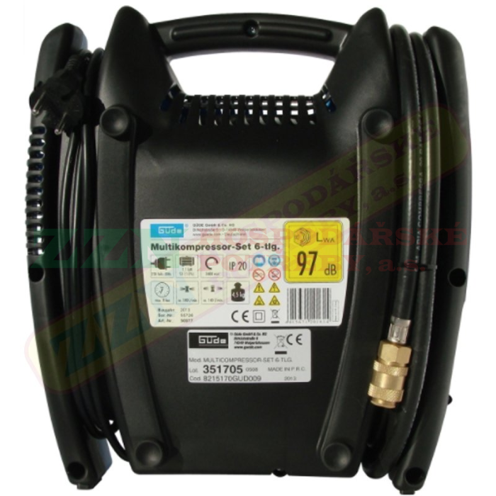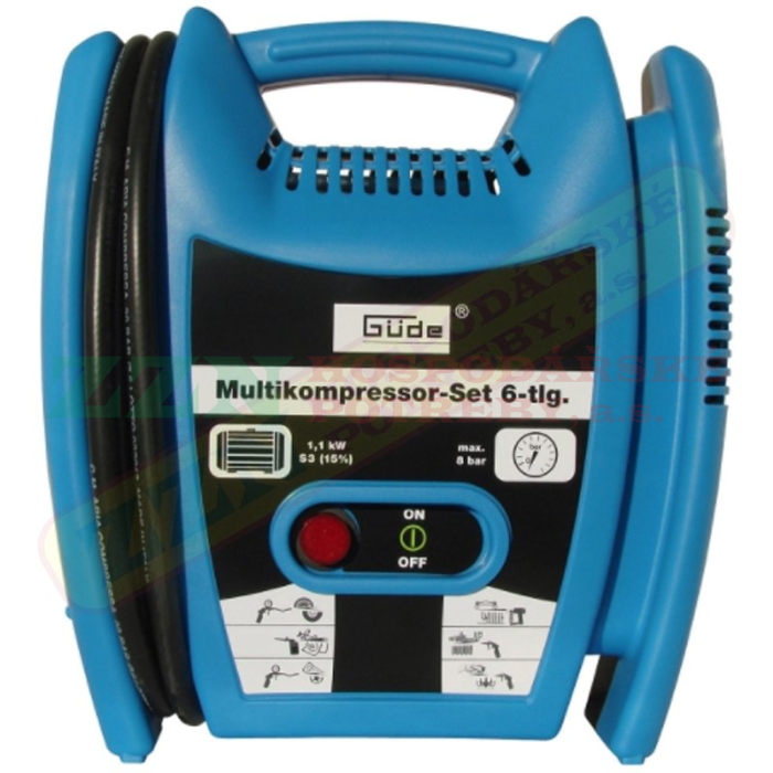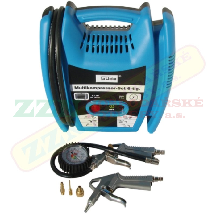 Příslušenství: ofukovací pistole, pneu hustilka, adaptéry pro nafukování míčů/matrací/pneumatik.