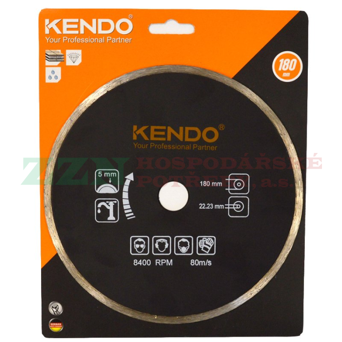 KENDO Řezný diamantový celoobvodový kotouč pro mokré řezání o průměru 180 mm, výškou segmentu 5 mm, je kotouč s nepřerušovaným segmentem po celém obvodu. Kotouč je vhodný na řezání velmi tvrdých materiálů, jako je např. keramika, glazované obklady, sklo a další tvrdé materiály.