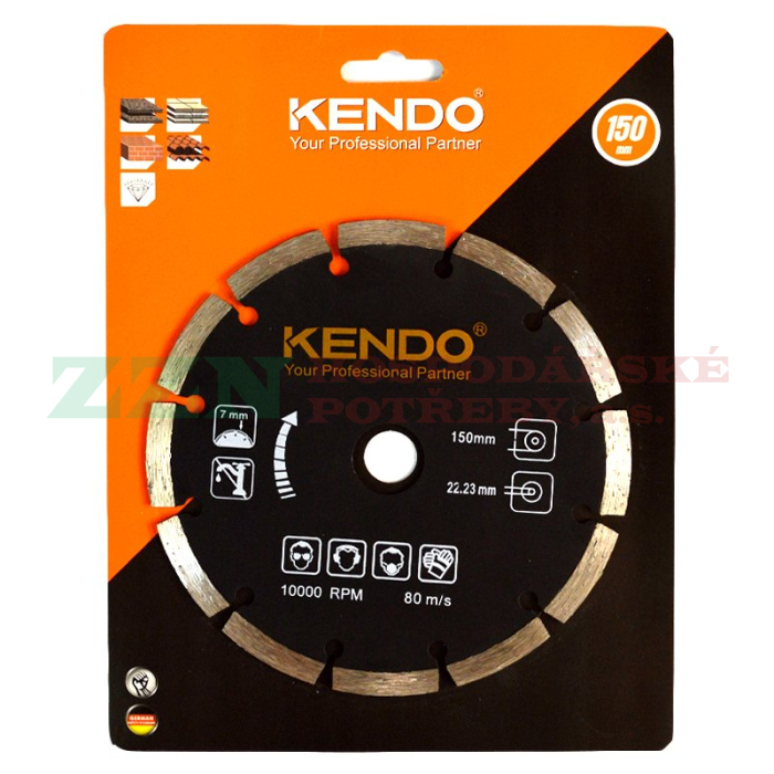 KENDO Řezný diamantový segmentový kotouč o průměru 150 mm, výškou segmentu 7 mm, určený pro řezání běžných stavebních materiálů - betonu, armovaného betonu, asfaltu, zdiva, kamene atp.