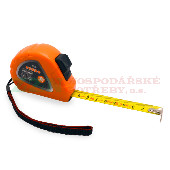 KENDO Svinovací metr 3 m s šířkou pásku 16 mm, vyrobený z tvrzeného ABS plastu a funkcí Auto-lock.