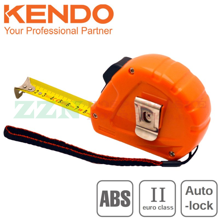 KENDO Svinovací metr 8 m s šířkou pásku 25 mm, vyrobený z tvrzeného ABS plastu a funkcí Auto-lock.