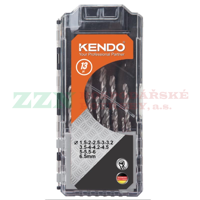 KENDO Sada spirálových vrtáků do kovu, HSS (vysokořezná ocel), 13-ti dílná 1.5 - 6.5 mm, 11603133