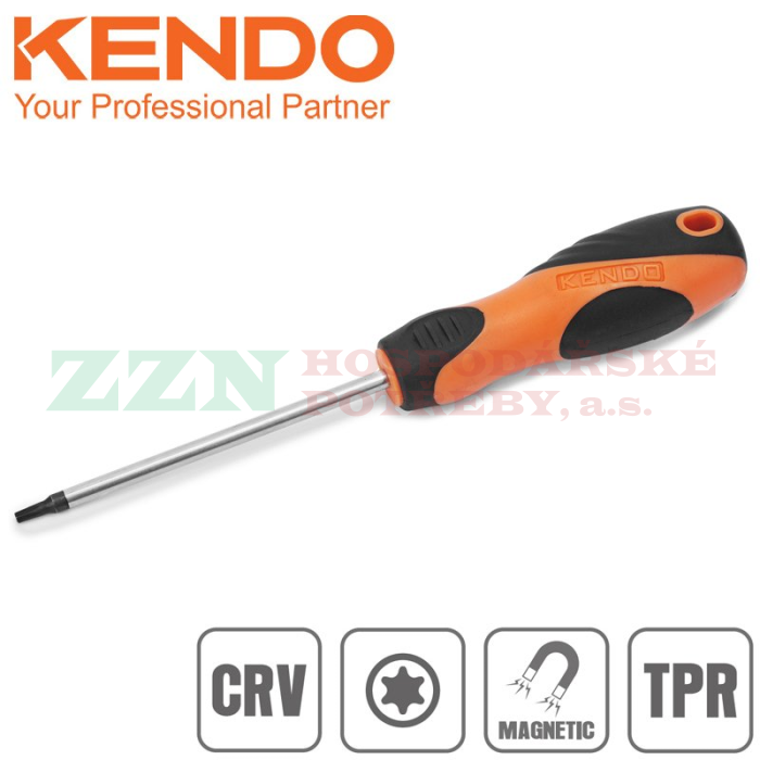 KENDO Torxový šroubovák s rukojetí z TPR pryže v kombinaci s plastem, CrV kov v matové úpravě.