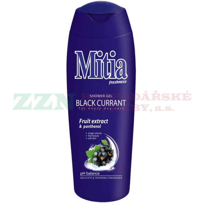 • Gel sprchový MITIA Black Currant s osvěžujícím extraktem z černého rybízu a panthenolem se zklidňujícími a regeneračními účinky.