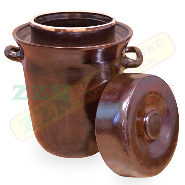 Keramická nádoba na zelí s víkem a uchy, vhodná na kvašení zelí, masa, okurek a jiné zeleniny.