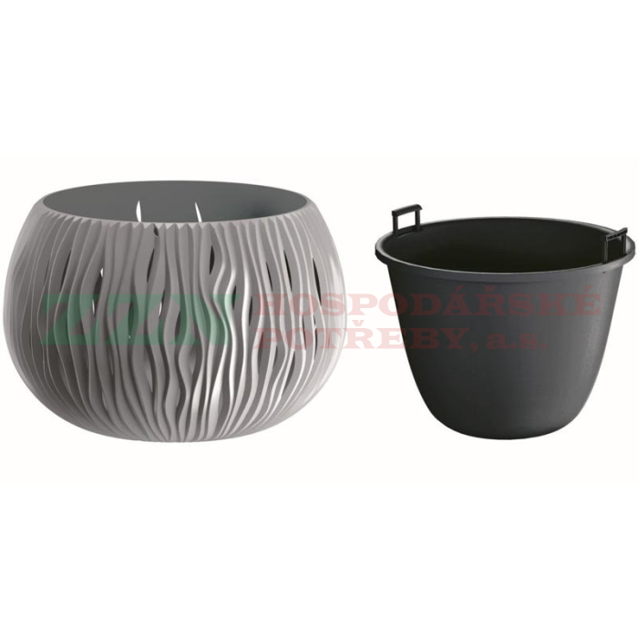 PROSPERPLAST Květináč s vkladem SANDY BOWL šedý kámen 29cm
