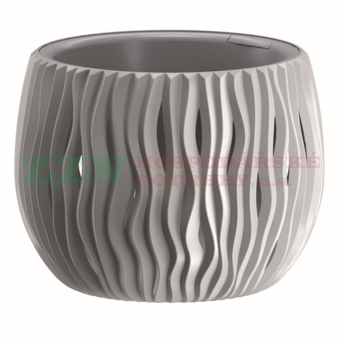 Plastový květináč SANDY BOWL se vyznačuje vyřezávanou svislou strukturou, která podtrhuje jeho dekorativnost.