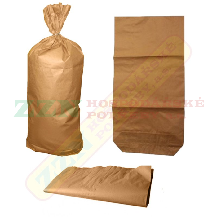 Pevný papírový pytel o objemu 120l, určený pro plnění sypkými materiály s nízkou vlhkostí, např. osiva, cukr atd.
