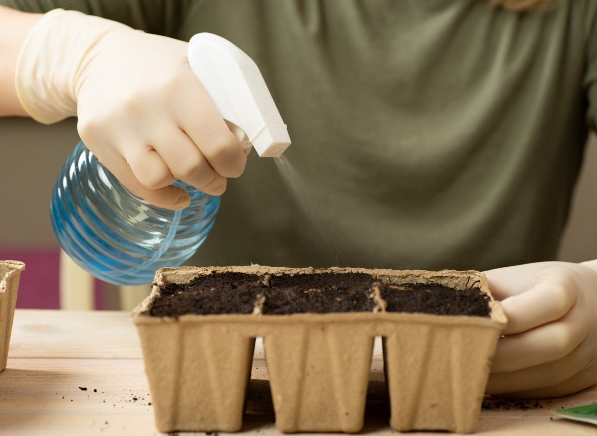 - Zalévejte semena pravidelně, aby substrát zůstal vlhký, ale ne promočený. Používejte rozprašovač, aby semena zůstala nepoškozená a voda se rovnoměrně dostala na povrch. Po vyklíčení rostliny postupně zvyšujte množství vody podle potřeby.