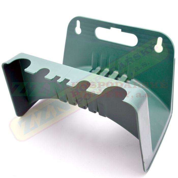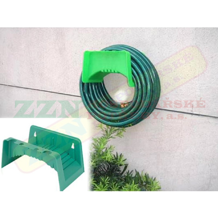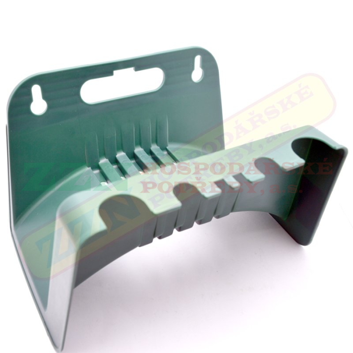 Pevný držák na hadici s otvory pro zavlažovací pistol. Držák na hadici vás zbaví starostí s neustále rozloženou hadici na zemi a jejím namotáváním. Držák je vyroben z pevného plastu s vyztuženou perforovanou částí. Na zeď upevníte přes dva otvory na zadní části. Vepředu je držák vybaven výřezy pro upevnění pistole, kterou tak budete mít ihned po ruce.