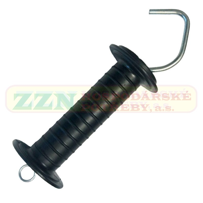 Vodivá rukojeť pro vstupy do elektrického oplocení. Typ ECO s volnou pružinou. Celková délka 22cm, délka plastové rukojeti 13cm, O držadla 3cm. Černá barva.
