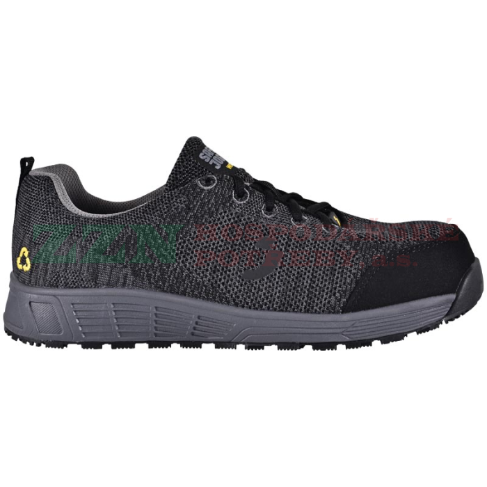 Široká bezpečnostní obuv sportovního stylu se svrškem z recyklovaného materiálu.