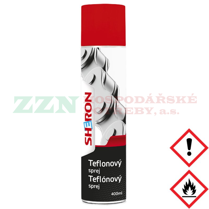 • SHERON Teflonový sprej je speciální kluzný přípravek pro použití na kovy, gumu i plast.