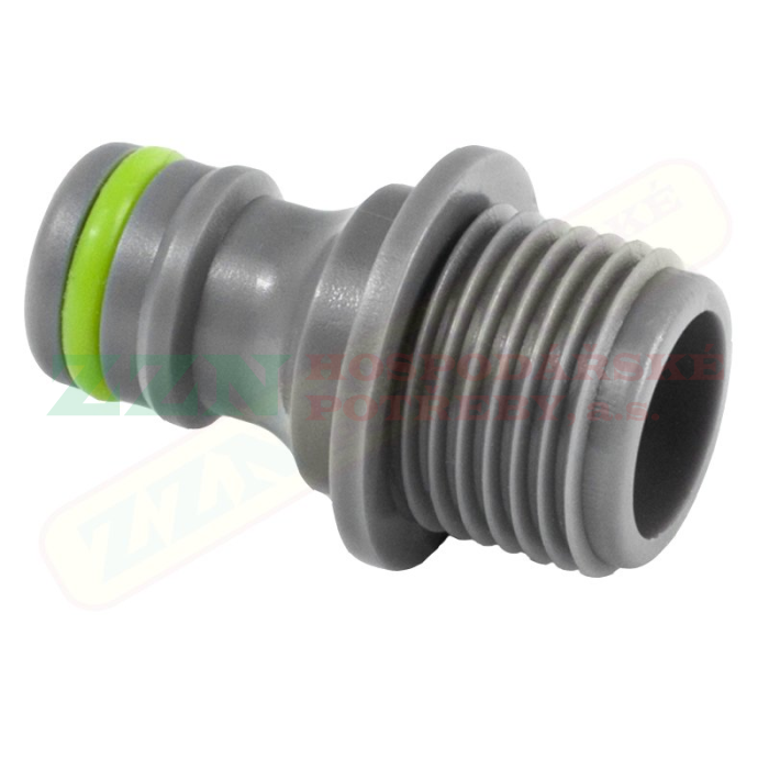 Plastový adaptér určený pro našroubování ke zdroji vody, postřikovačů a jiné zavlažovací techniky, na který se následně napojují rychlospojky s hadicí.