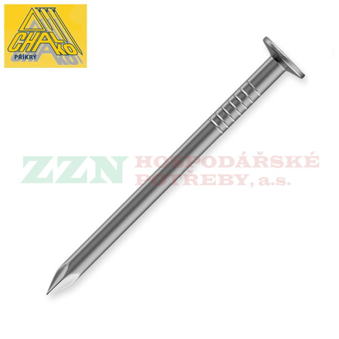 Stavební hřebík do dřevěných konstrukcí s plochou hlavou bez povrchové úpravy.