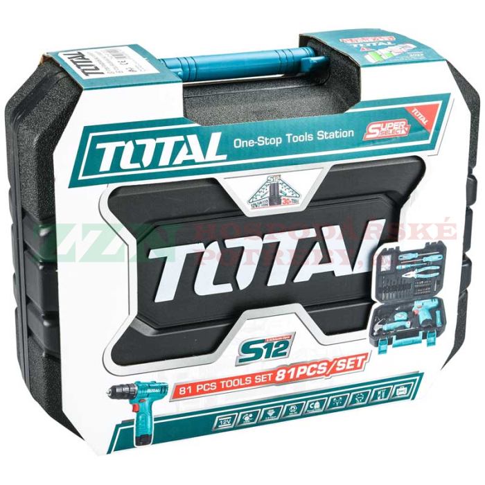 TOTAL Aku vrtací šroubovák 12V Li-ion s nářadím, sada 81ks, THKTHP10812